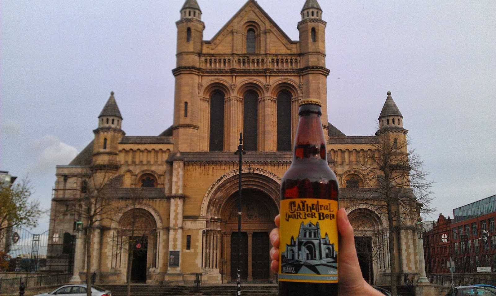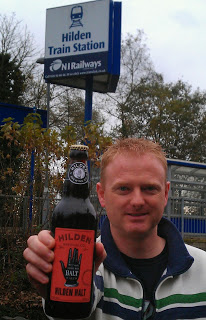 Then in a second I began planning similar photos for other Northern Ireland locally produced bottles of beer. Thoughts like Ards Ballyblack stout on the Ballyblack Rd Newtownards, the malty mild Hilden Halt at Hilden railway halt near Lisburn, the Cathedral Quarter pale ale at St Anne’s Cathedral, Belfast etc…