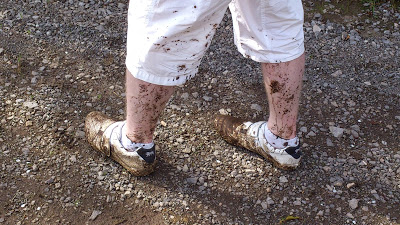 Feeling accomplished, relieved and reflective we headed back down the hill towards the bridge (again with the Mrs on my back – remember the heels?) and guess what – the huge muddy puddles hadn’t gone away. “Drat” I said, or maybe something a bit stronger. And so the return journey was much the same as the outward journey – namely her on my back, me getting bogged down in, er, a bog and both of us laughing hysterically at the whole thing.