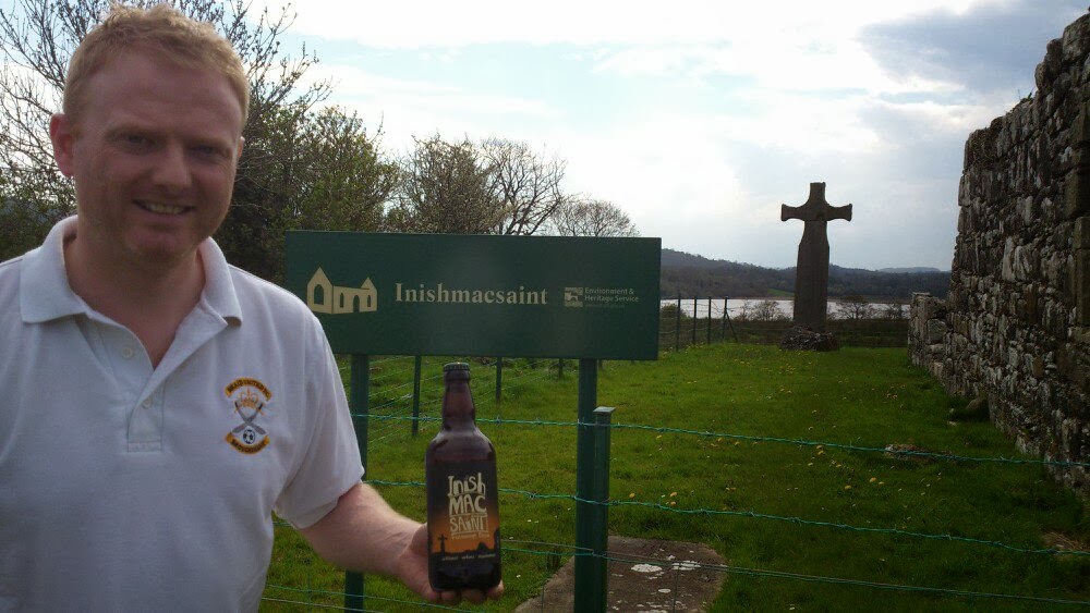 Previously I told the story of how I developed a bit of a fascination with Inishmacsaint beer from Fermanagh. I initially became engrossed with finding out about the name and history of Inishmacsaint island – and this developed into thinking about travelling there to have a photo taken with the beer bottle in front of the Inishmacsaint sign and cross. I detailed how I visited other areas closer to my home in Carrickfergus to have photos with beers such as Hilden Halt at the Hilden railway stop, Titanic beer at Titanic Visitor Centre and the Ards Brewing Ballyblack stout on Ballyblack Road near Newtownards. You get the idea.