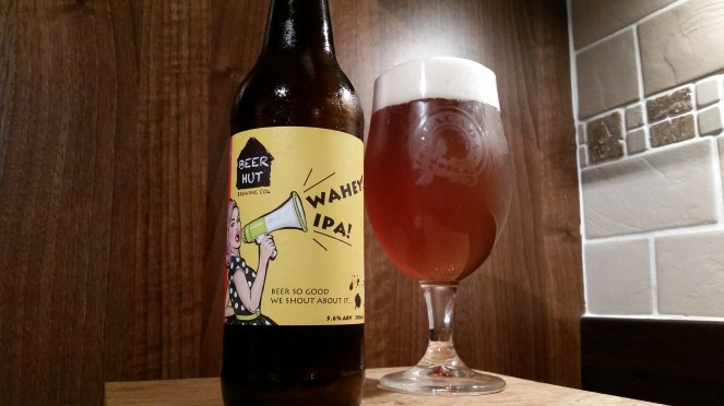 Next out of the Hut is Wahey! IPA. 5.6% ABV and has a lovely golden amber colour. Again there’s that spicy fruitiness that was present in the lager – the spice not as prominent as before but it’s there. The orange and mango fruit comes to the fore initially and I’m thinking this could be a fruity wee bomb but the earthy spice pulls it back. I’d have preferred the fruity hops to be let loose to run amok like a load of crazed toddlers in a living hell that is a soft play area but the child harness of earthiness put an end to that.