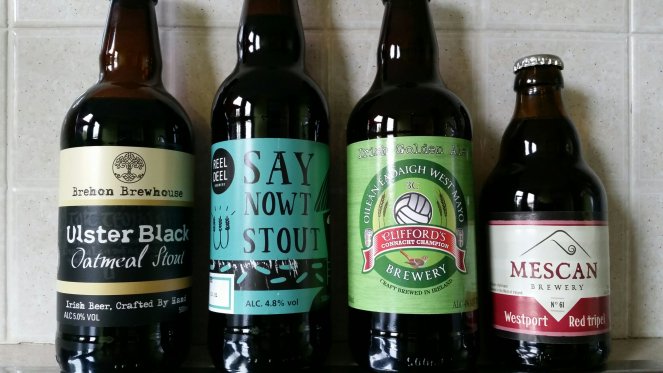 200 miles from home to hotel, in torrential rain on a motorbike, I was more than ready for a pint after parking up at our accommodation in Westport, County Mayo. For a small seaside town it has an impressive selection of Irish draught and bottled microbrewery beers in pubs as well as a superb offering in the local Supervalu supermarket.