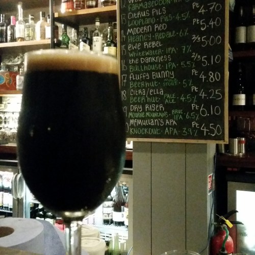 Finally for now, the biggest hitter of the night came from Mourne Mountains Brewery and the new 10% ABV imperial stout Switchback. To my knowledge this is as high as MMB has gone since its creation in autumn 2015 and is probably down to the new assistant brewer Gareth deciding that’s what he wanted to brew. So kudos to him for jumping in at the deep end and brewing a deep and slightly hazelnut stout that’s not only a big boy, but a big boy in a tall boy 440ml can.