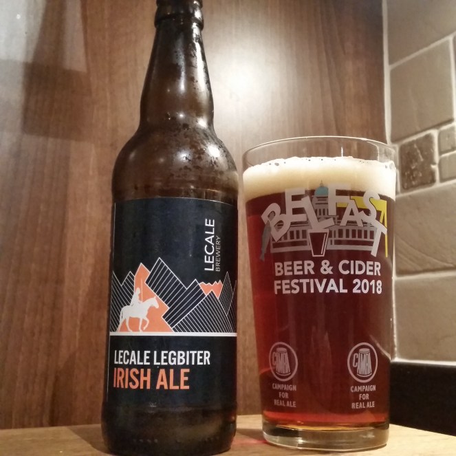 That’s followed by Legbiter ale, also weighing in at 4.5% ABV and not to be confused with a beer of the same name by the troubled Strangford Lough Brewing Company, details of which can be found here. A legendary name has no brewery favourites. The expected chestnut colour in the glass, this has a light nuttiness and usual caramel on tasting. Again there’s a dabble of spice in there which I admit took me by surprise. It’s always good to have a brown ale that has a slight edge to it.