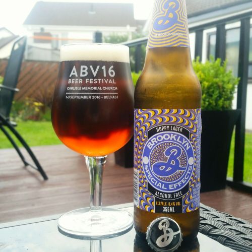 Let’s get this done then – starting with Brooklyn Brewery’s 0.4% ABV Special Effects lager. First thing noted is that it’s dark brown and likely to scare your stereotypical Irish lager guzzler. But as anyone who reads my blog is a well informed and educated soul, you’ll know that some of the best lagers in the world are dark – namely German bocks, one of my favourite styles.