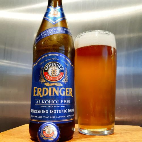 The last one from Tesco is Germany’s macro offering Erdinger Weissbräu’s Alkoholfrei wheat beer. The label blurb says this “refreshing isotonic drink … reduces tiredness and promotes the natural functioning of the body’s immune system and energy metabolism”. Wow, that’s a new one for me. Step aside Lucozade Sport. I’m convinced a shed load of sugar must be added somewhere but there’s no mention of it in the ingredients list.