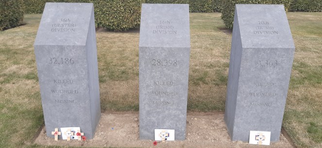 The town of Messines in Belgium has an Irish Peace Park commemorating the 60,000 injured and dead soldiers from the 10th and 16th Irish Divisions and 36th Ulster Division. It’s overwhelming just sitting down on the grass, looking up to the blue sky, hearing the birds sing and being bloody thankful that men gave their today for my tomorrow. I cried.
