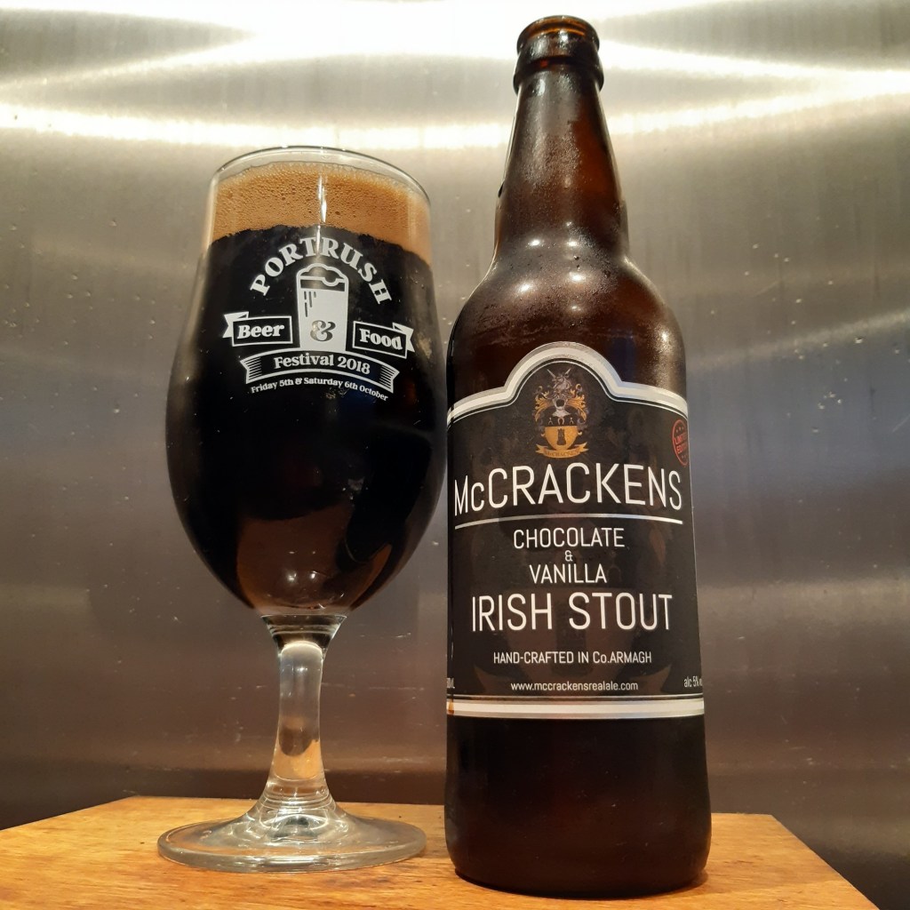 More blethering about coconut is coming later but let’s stay with stouts for now and from Portadown is McCracken’s Chocolate & Vanilla 5% ABV stout. To my surprise it’s initially dry with a whack of bitter, dark chocolate bursting through. Are you a dark chocolate or milk chocolate fan? Well think of this as 80% dark and 20% milk.