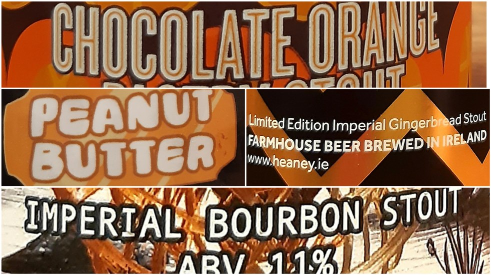 “Tis the season for stouts”, they say. “Load of rubbish”, I reply. Stouts are for all year – not just winter, though I’m sure there’s a better sounding slogan in there somewhere. Let’s round up a small handful of Irish stouts, north and south, and see what happens. Before you ask, I do own more…… Continue reading Stouts: The Orange, the Peanut, the Ginger and the Bourbon