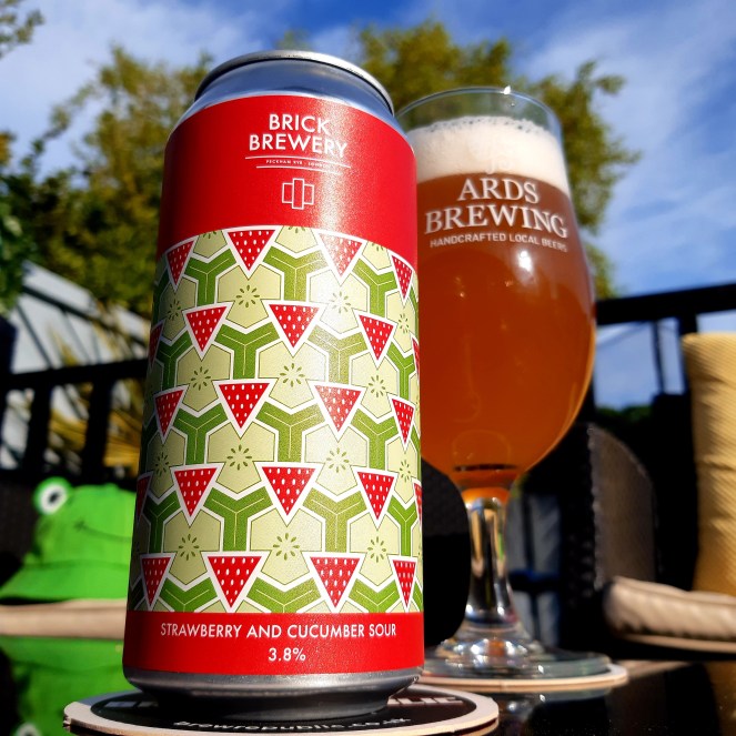 Next in line is a first for me, that being a beer from Peckham’s Brick Brewery. Strawberry and Cucumber Sour pours a deep orange colour but is a cucumber assault, the folk at Brick haven’t scrimped on the veg. It’s light and foamy, bursting with green freshness and while the strawberry essence does provide a small sweet hint, cucumber dominates this beer. Expect low level sourness and at a mere 3.8% ABV, it’s the kind of strength that lends itself to being repeatedly bought for a barbecue or the like. The question is though, should you buy it at all? My answer is most definitely yes, if you like cucumber.